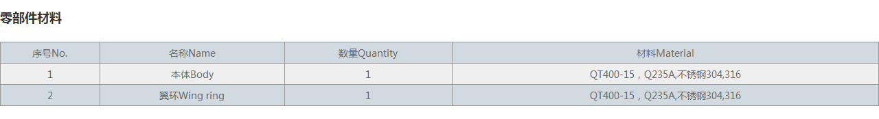 | 2 | 翼環(huán)Wing ring | 1 | QT400-15,Q235A,不銹鋼304,316 |
