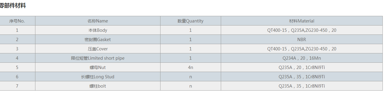 | 5 | 螺母Nut | 4n | Q235A,20,1Cr8Ni9Ti |